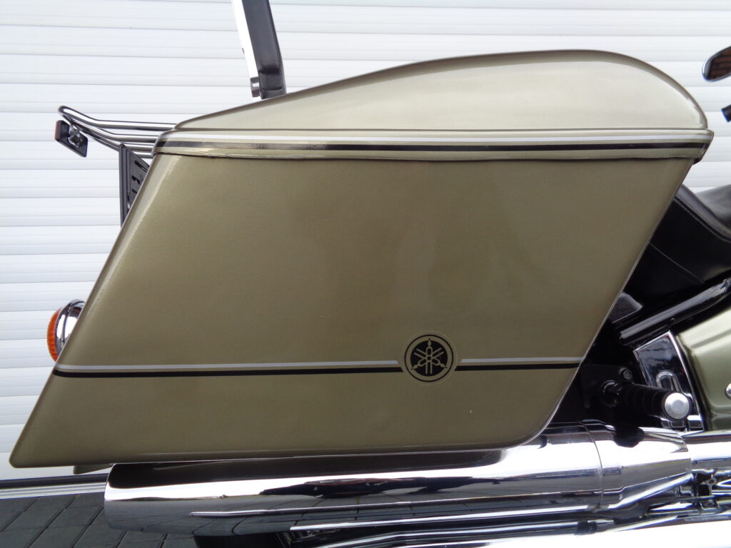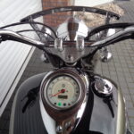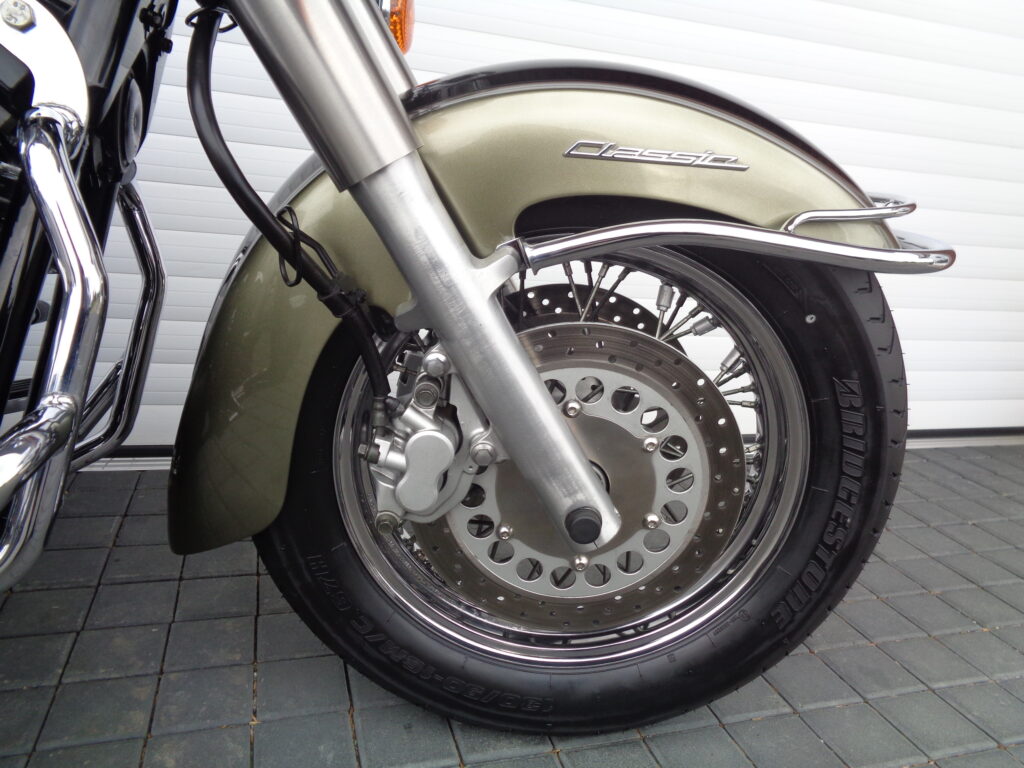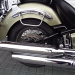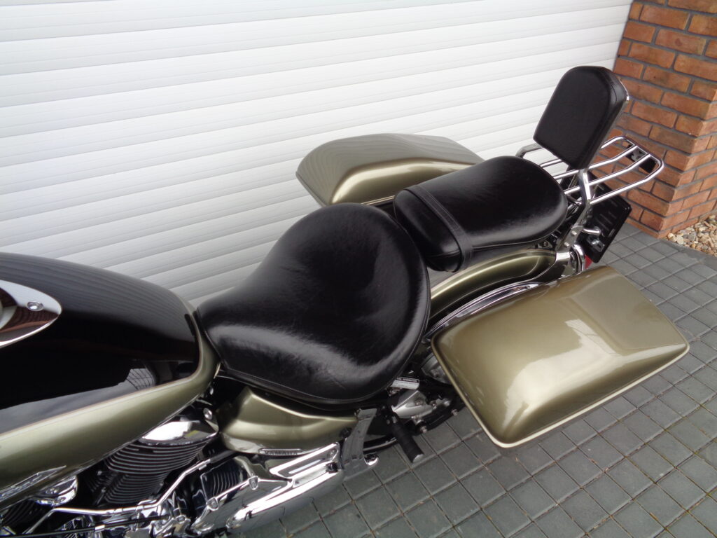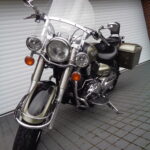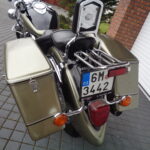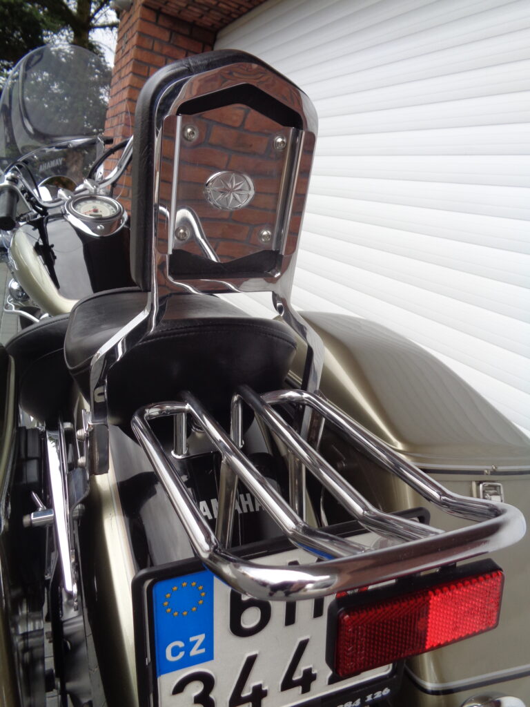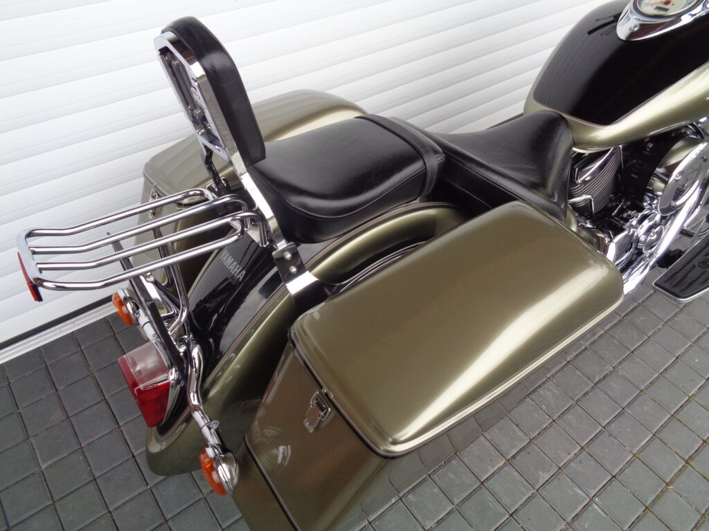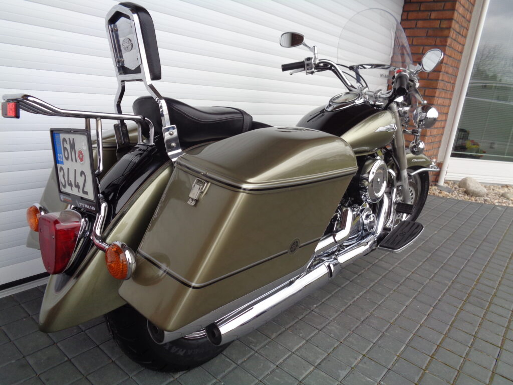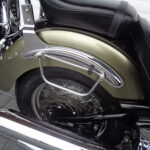 VÝBAVA: chromovaný rám předního blatníku, přídavná světla, originál plexi štít – výškově stavitelný, přední padací rámy, rychloupínací skořepinové kufry v barvě – zamykatelné + zamykatelné k motu – 2x klíč. Dále opěrka spolujezdce s nosičem, okrasné kryty rámu, značkový laděný výfuk – hluboký dunivý zvuk, / přední svod shodný pro oba výfuky /, stínítko hl. světla, přidám značkový elektronický zámek na kotouč +nový zámek kufru … .