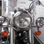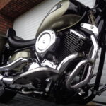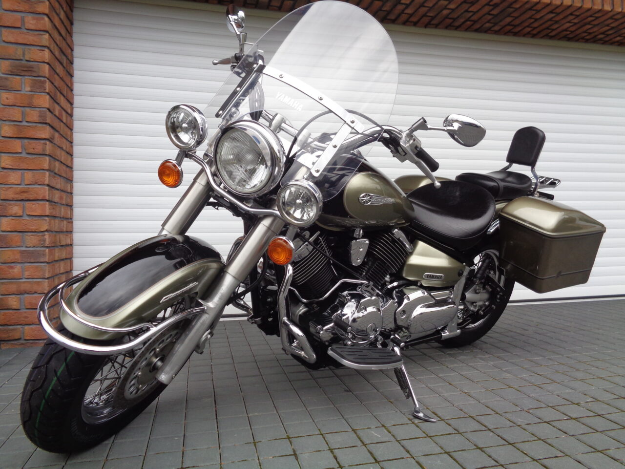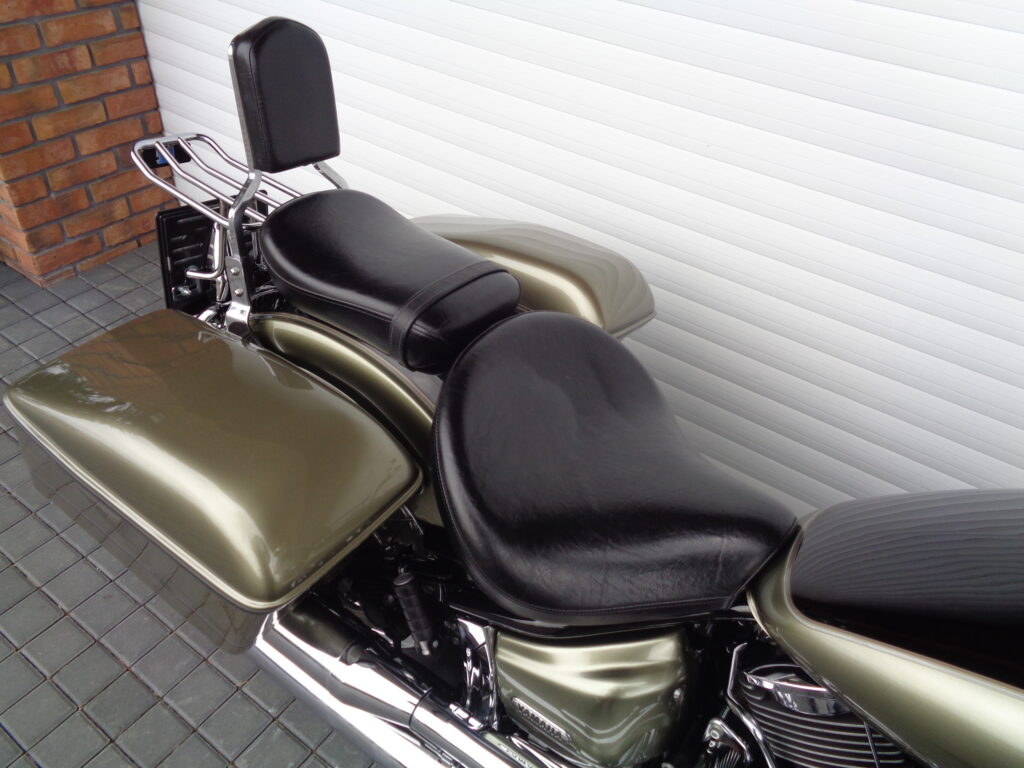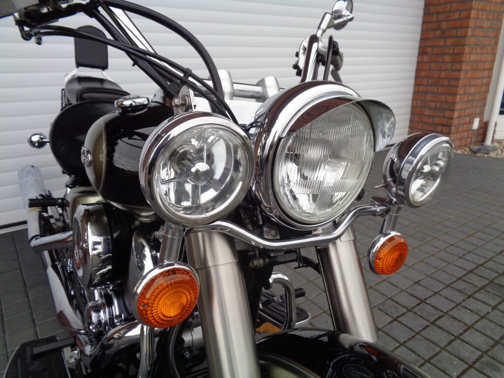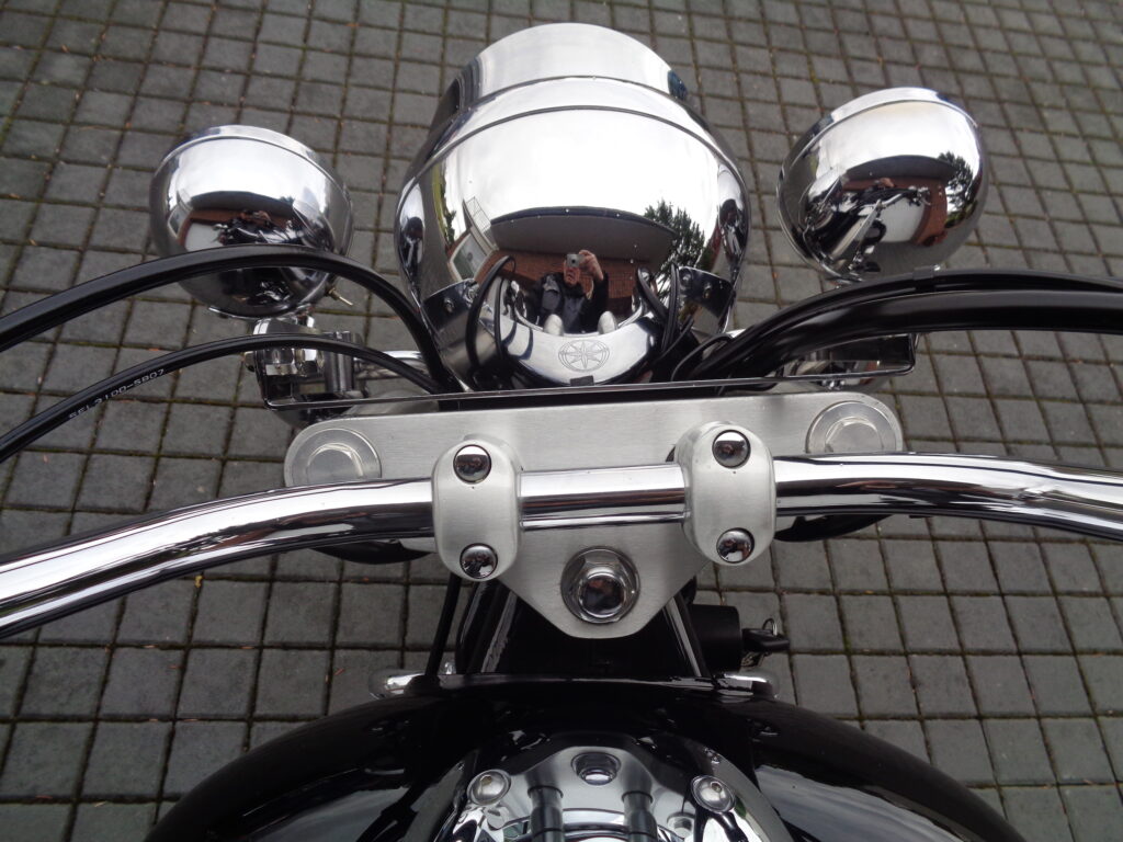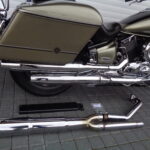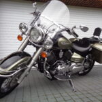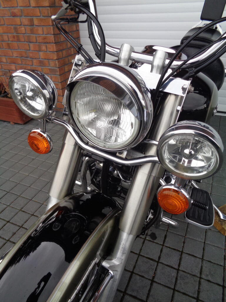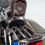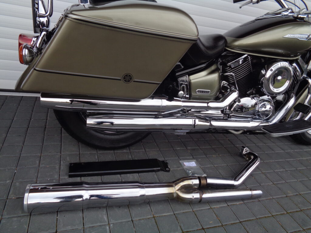 VÝBAVA: chromovaný rám předního blatníku, přídavná světla, originál plexi štít – výškově stavitelný, přední padací rámy, rychloupínací skořepinové kufry v barvě – zamykatelné + zamykatelné k motu – 2x klíč. Dále opěrka spolujezdce s nosičem, okrasné kryty rámu, značkový laděný výfuk – hluboký dunivý zvuk, / přední svod shodný pro oba výfuky /, stínítko hl. světla, přidám značkový elektronický zámek na kotouč +nový zámek kufru … .