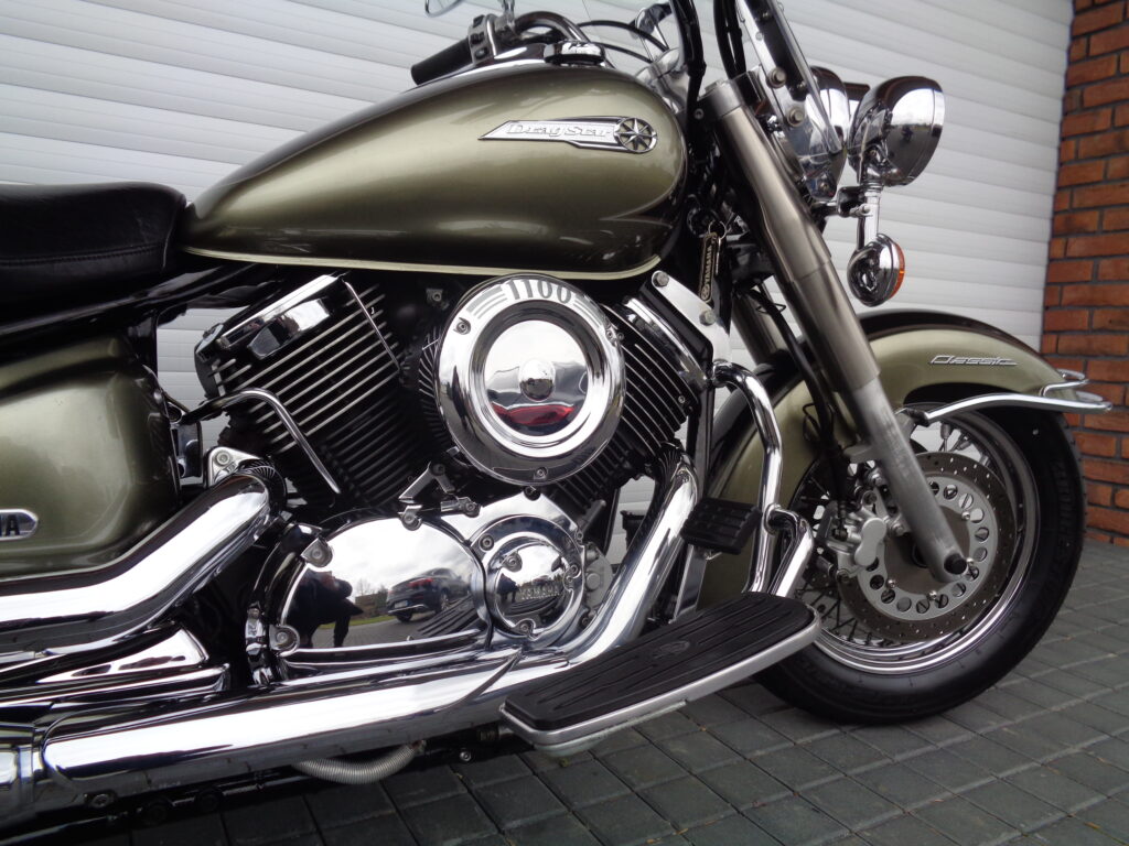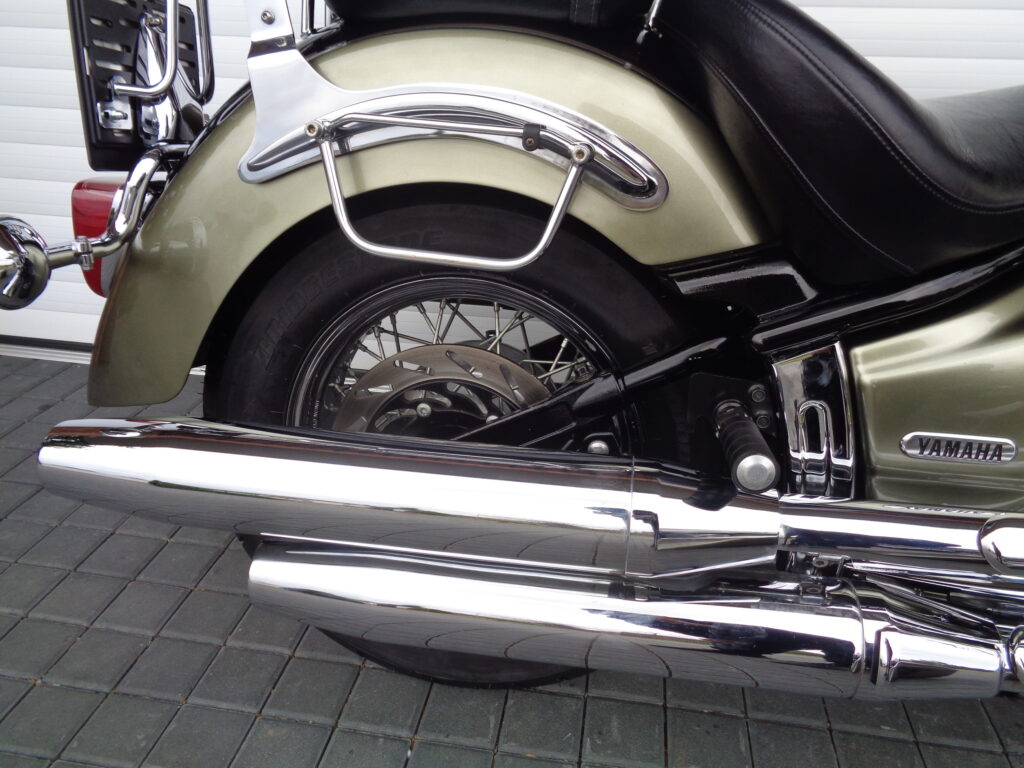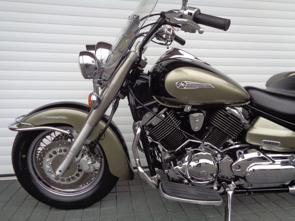 YAMAHA XVS 1100A Drag Star Classic. / 46 kW /. Rok výroby: 2005, provoz: 10/2005, najeto: 49.345 km. Dovoz ze Švédska: 4/2021, v ČR 1. majitel. Servisní knížka + účty od všech servisů v minulosti, orig. manuály, 3x původní klíče + štítek klíčů, nepoužité nářadí … T.K do: 3/2029. VIN: JYAVP161000008523.
